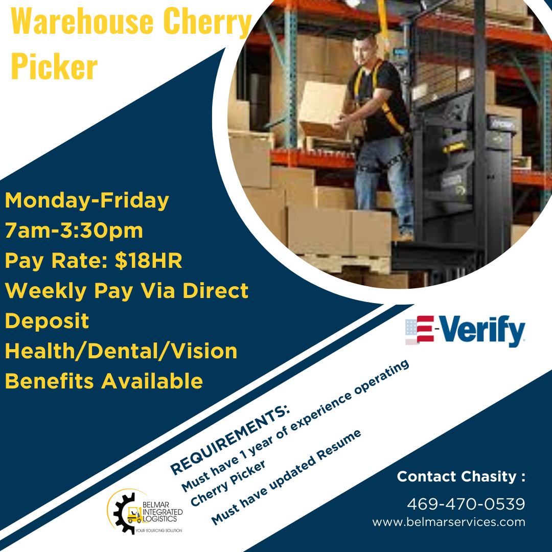 - Will be putting stock away in its location utilizing the cherry picker/order picker