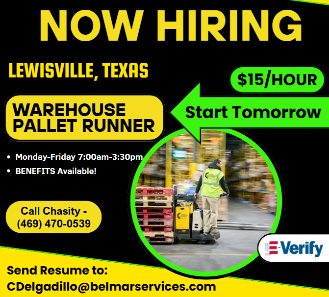 Payrate: $15.00/HR + BENEFITS AVAILABLE