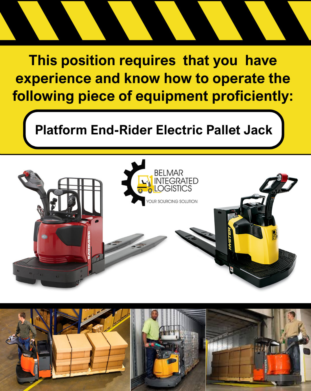 - Minimum 1 year of Electric Rider pallet jack experience required