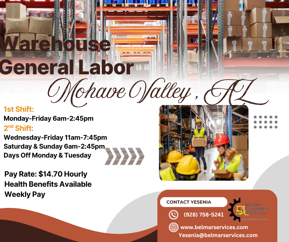 Payrate: $14.70/hourly + Health Benefits + Referral Bonus