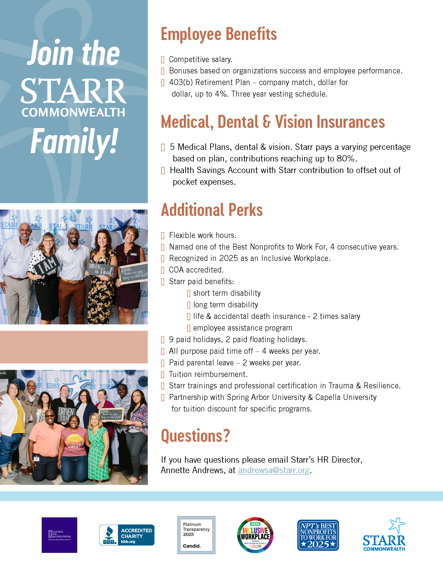 *As a 501c(3) organization, Starr Commonwealth employees are eligible to participate in the Public Service Loan Forgiveness (PSLF) Program for student loans.