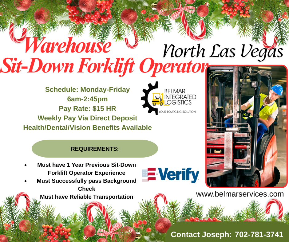 Must have 1 year of experience operating Sit-Down Forklift/Counterbalance Forklift