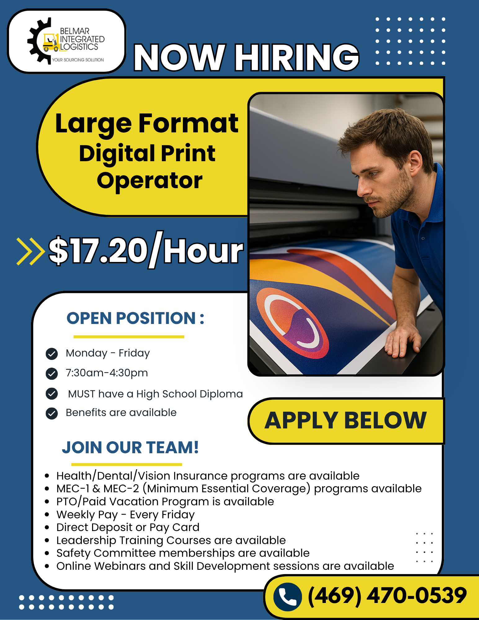- 3-5+ years industry Operator experience in Large Format Digital Printing